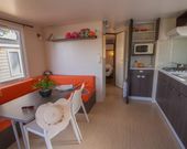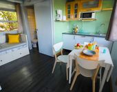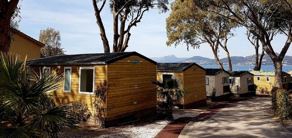 Jedes Mobilheim mit Außenfassade aus Kiefernholz liegt eingebettet zwischen Eukalyptus-, Jasmin-, Myrten- und Klebsamenpflanzen, die eine erfrischende Atmosphäre schaffen. Der Campingplatz liegt nur 600 Meter vom Strand Almanarre entfernt und lässt Sie im Schatten von Kiefern und Eukalyptushainen in die Essenz der Provence eintauchen, was für ein wirklich ruhiges Urlaubserlebnis sorgt.